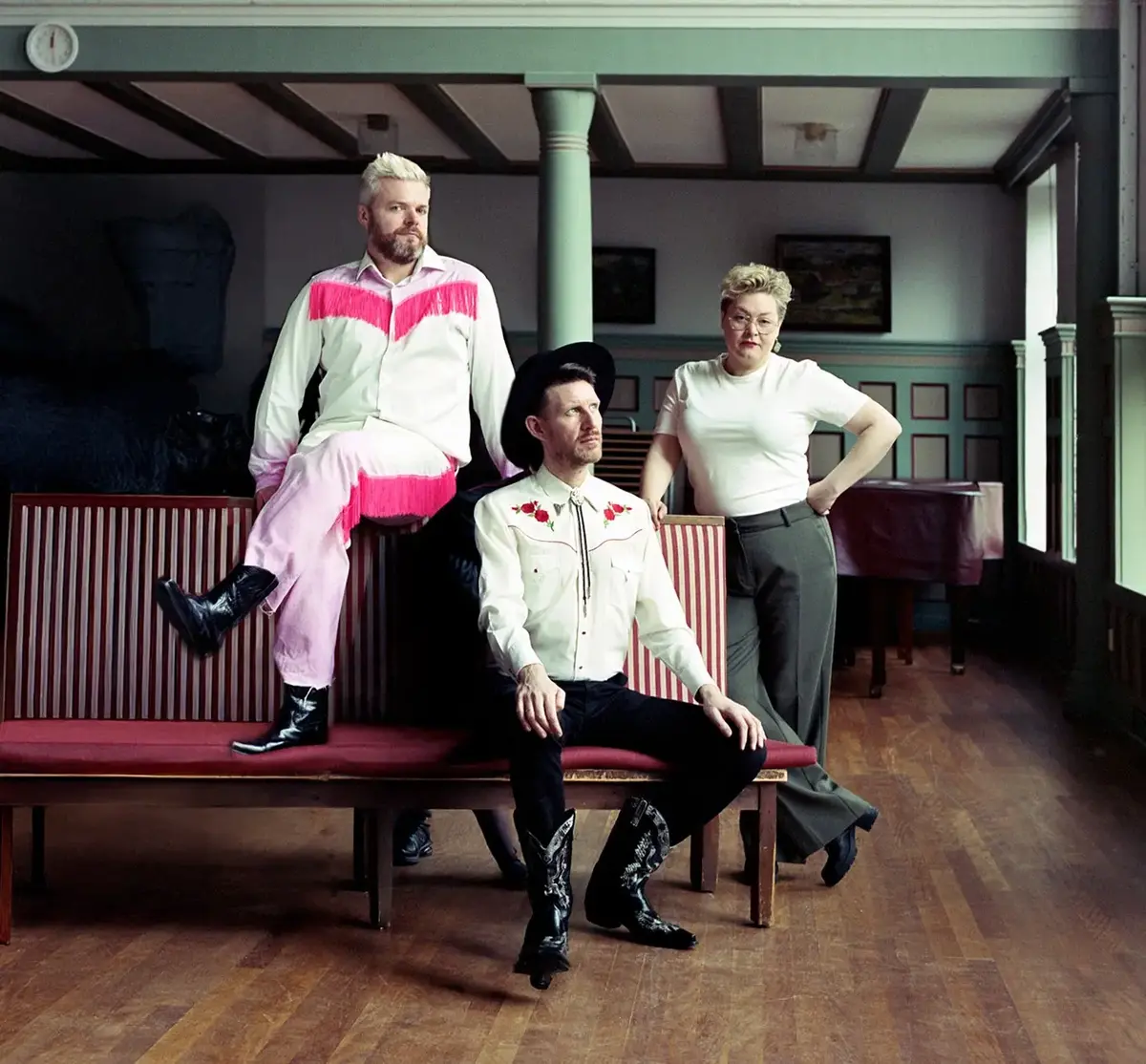 Vokalist Jens Kihl (kulturredaktør i Bergens Tidende), Lars Korff Lofthus (kunstnerisk råd for Skakke Folkedrakter) og dei rare vennene deira gler seg til å lage lun, morosam og ettertenksam stemning på museet.