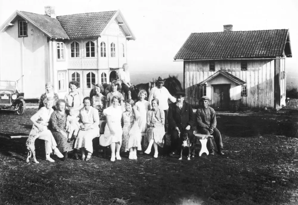 Sommergjester på Nedre Kirkeby, Vang, ca 1930. Foto: Anno Domkirkeodden.