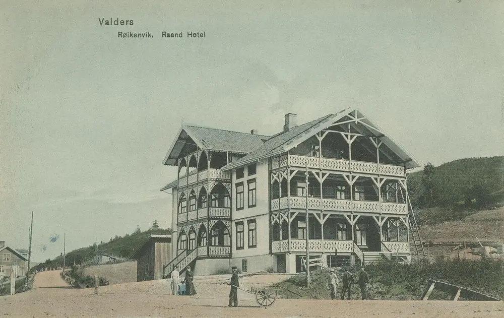 Rond hotell i Røykenvik, Brandbu, ca. 1905. Foto: Peter Alstrup Kunstforlag/Randsfjordmuseet.