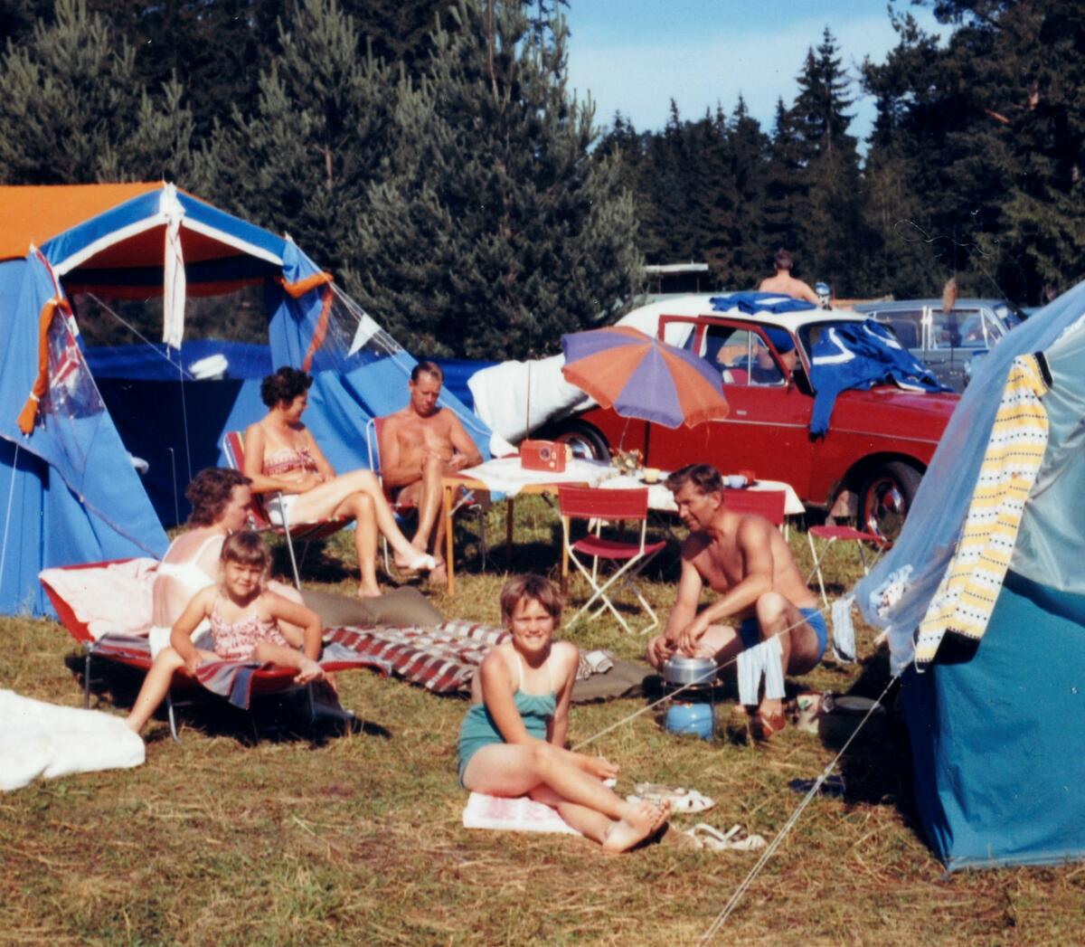 Hvem husker de oransje, brune, grønne og blå husteltene? Disse ble svært populære på 1960-70 tallet, og i teltet var det plass til familien, gjester og nødvendig campingutstyr. Husteltene hadde opp mot 2 meter ståhøyde, gjerne flere soverom og plastikkvinduer med gardiner.