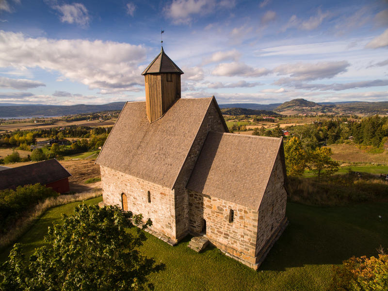 Vi tar også en runde opp til middelalderkirken Tingelstad gamle kirke (St. Petri) og ser på både kirkas interiør og eksteriør.