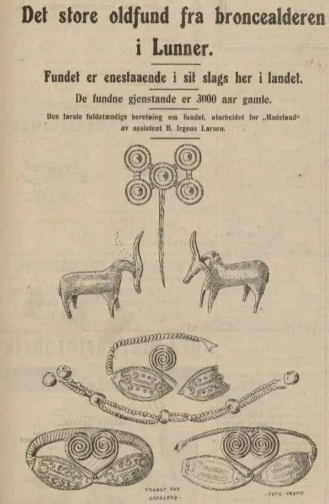 For om lag 100 år siden ble det gjort et spesielt funn på en åker på Grindvoll i Lunner kommune. Den første høsten hang en halsring av bronse seg på plogen. Et par år senere kom ytterligere to halsringer, en draktnål, 353 perler og to dyrefigurer til syne på det samme stedet. Gjenstandene viste seg å være fra yngre bronsealder, ca. 1100 - 500 fvt. Arkeologer har omtalt funnet som bemerkelsesverdig og praktfullt og mener at gjenstandene er lagt ned i jorda som en votivgave, et offer, til høyere makter.