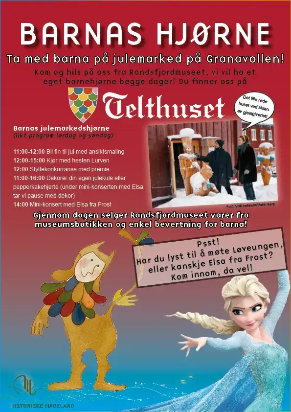 Besøk Randsfjordmuseets "Barnas julemarkedshjørne" ved Telthuset på Granavollen! Se plakat under.
