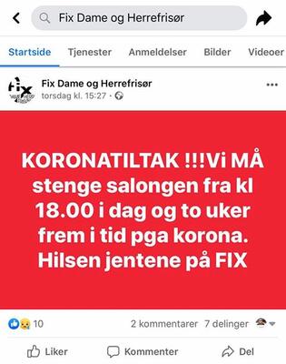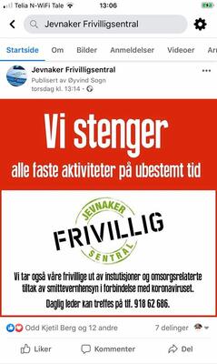 Facebook innlegg 12. og 13. mars 2020