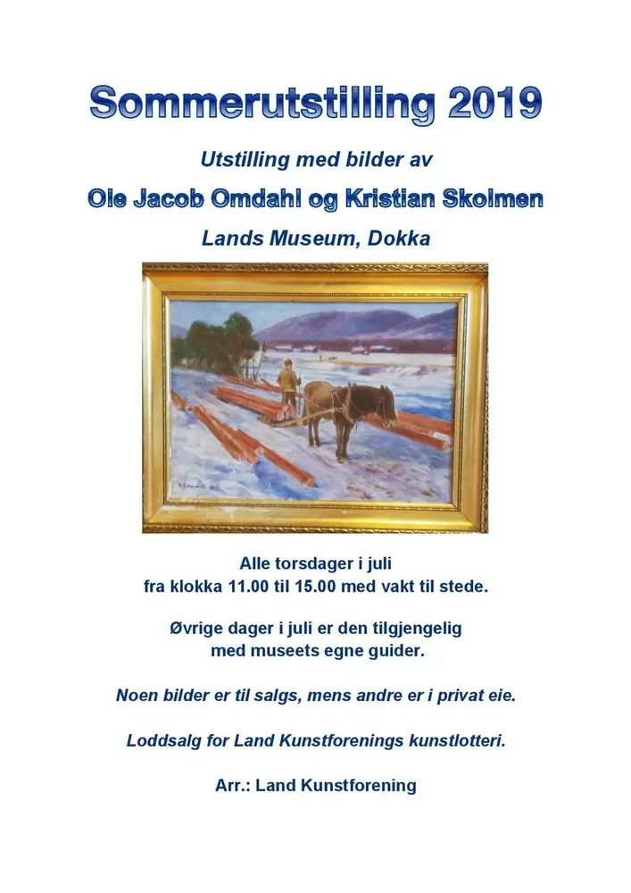 Sommerutstilling i samarbeid med Land kunstforeningUtstilling med bilder av Ole Jacob Omdahl og Kristian Skolmen.1/1 Åpne eller lukk bildetekst