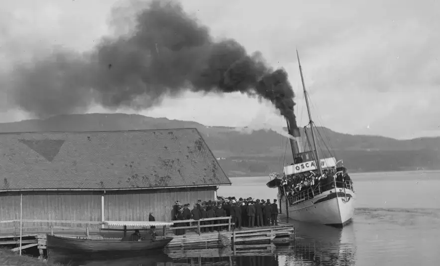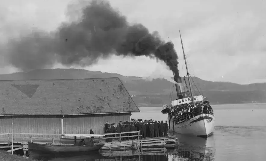 Dampskip legger til kai. Foto: Welo/Randsfjordmuseet