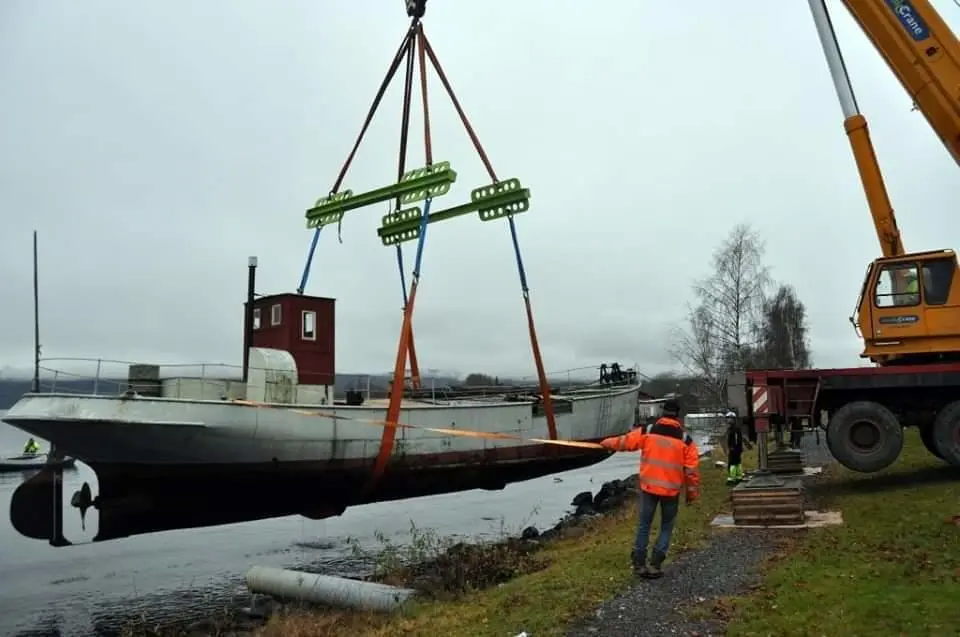 MS Brandbu heises opp av vannet i 2013. Foto: Randsfjordmuseet