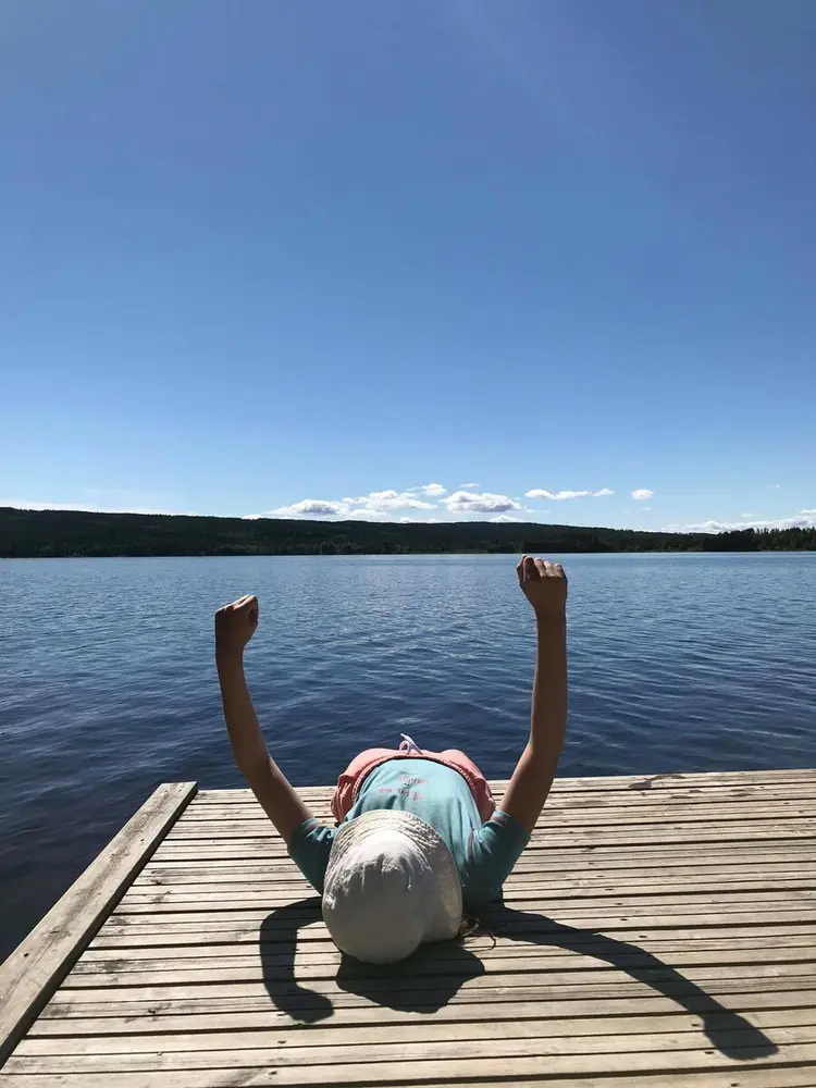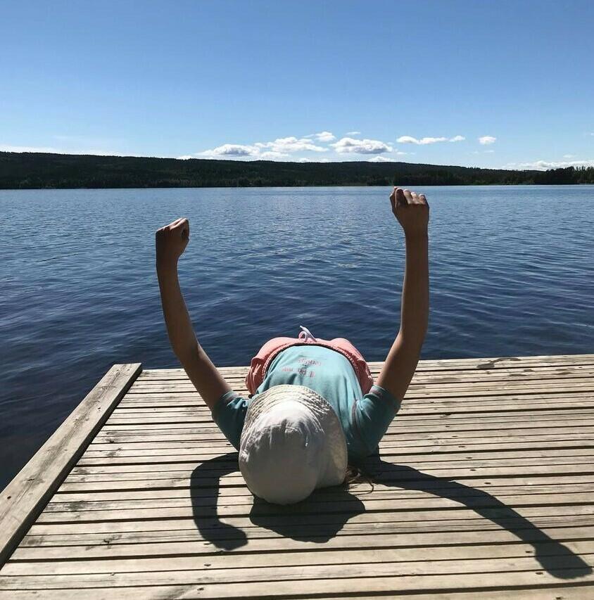 Jente som nyter sommeren ved Frysjøen, Grue. Foto: Siri Eriksen Gjems.