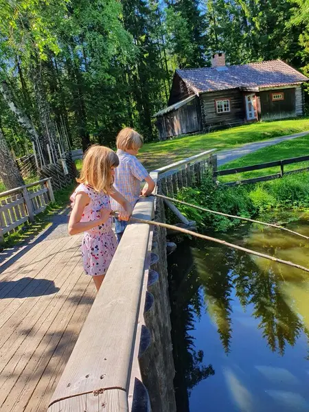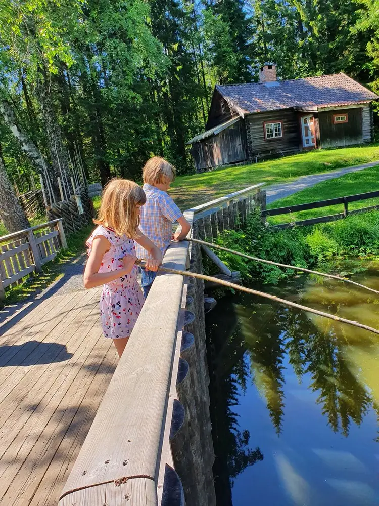 Barn fisker karuss på Eiktunet, Gjøvik, 2020. Foto: Ingeborg Gihle.