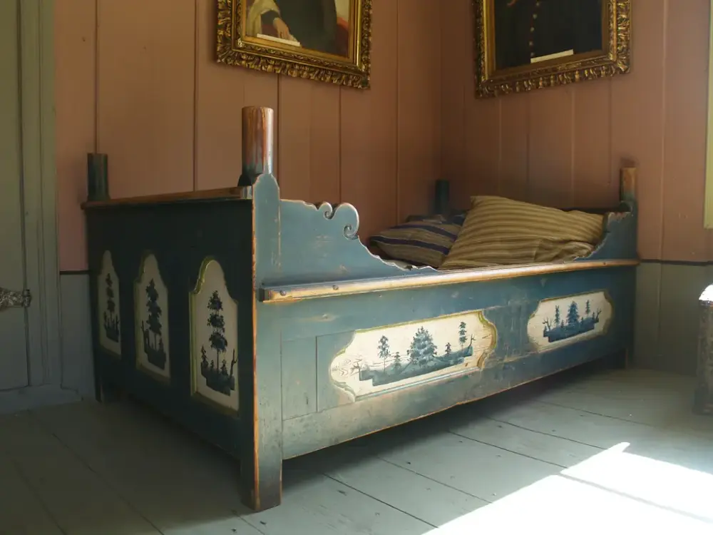 På omvisning med omviser tar vi turen innom Tomle der vi kan veggmaleri og gjenstander dekorert av Peder Aadnes.