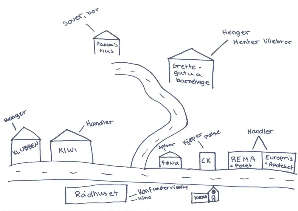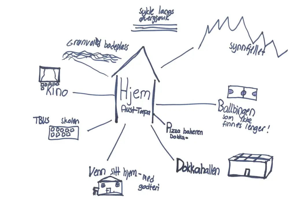 Her er noen eksempler av mentale kart tegna av ungdom fra Søndre Land og Nordre Land, oktober 2020.