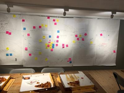 Det første verkstedet ble gjennomført sammen med Ungdomsrådet i Søndre Land. I verkstedet lagde vi et stort kart over Søndre Land ved hjelp av hukommelsen, som vi brukte som utgangspunkt for å diskutere hva som er bra og mindre bra med oppvekst og omgivelser her. Ungdommene kom også fram til en del forslag til endringer og forbedringer, som ble skrevet opp på gule lapper og satt på kartet. Vi fra museet er veldig fornøyde med å ha fått mye input fra engasjerte ungdommer, og gleder oss til å ha flere Kartverksted med ungdom!